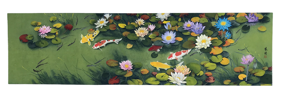 私は幼少より絵画を学び、中国宋元の筆墨精神を基盤としつつ、西洋絵画の技法や色彩理念を取り入れ、中西融合した独自の芸術スタイルを確立しました。